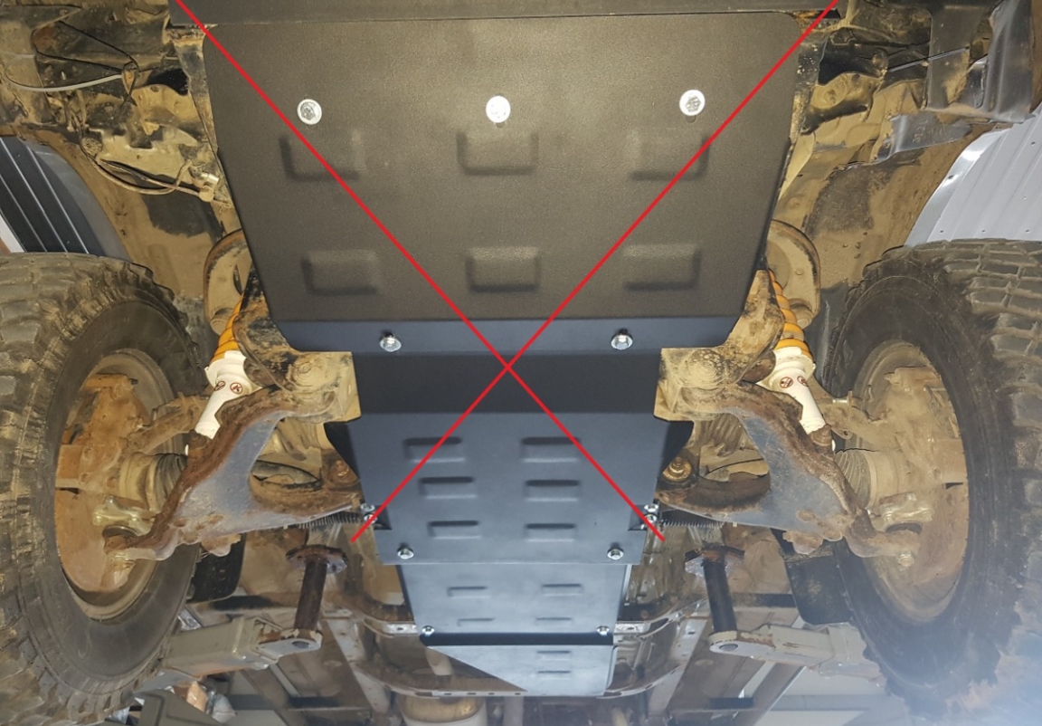 | Het monteren van de carterbeschermplaat eist geen wijzigingen aan de voertuigstructuur. |