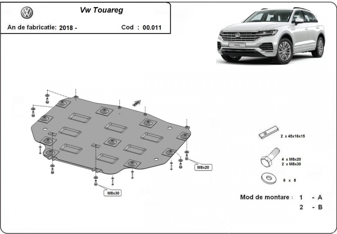 Voor de bescherming van: versnellingsbak De motor beschermplaat is nieuw en past perfect bij alle versies van VW Touareg geproduceerd tussen 2018 en 2026. Gemaakt van 2 mm dikke Staalplaat. Schroeven, moeren, alle bevestigingsaccessoires zijn inbegrepen. Alle carterbeschermplaten zijn poedergecoat, om corrosie te vermijden. De buitenkant van de carterbeschermplaten heeft staalversterkingen, waardoor de weerstand tegen impact wordt verhoogd. |