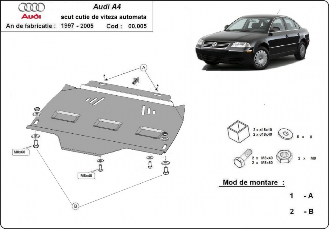 Versnellingsbak Beschermplaat voor VW Passat B5, B5.5- automatisch (1997-2005)