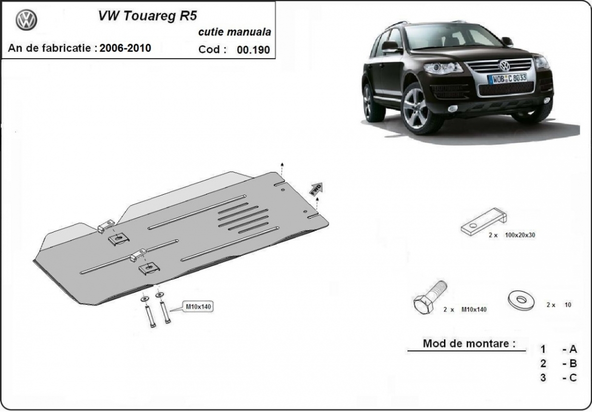 Voor de bescherming van: versnellingsbak De motor beschermplaat is nieuw en past perfect bij de VW Touareg R5, met de volgende motor / aandrijfversies: all type - geproduceerd tussen 2006 en 2010. Gemaakt van 3 mm dikke Staalplaat. Schroeven, moeren, alle bevestigingsaccessoires zijn inbegrepen. Alle carterbeschermplaten zijn poedergecoat, om corrosie te vermijden. De buitenkant van de carterbeschermplaten heeft staalversterkingen, waardoor de weerstand tegen impact wordt verhoogd. |