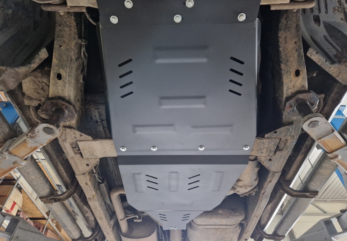 | Ieder voertuig heeft fabrieksgemaakte schroefgaten voor de carterbeschermplaat, voor een gemakkelijke montage. |