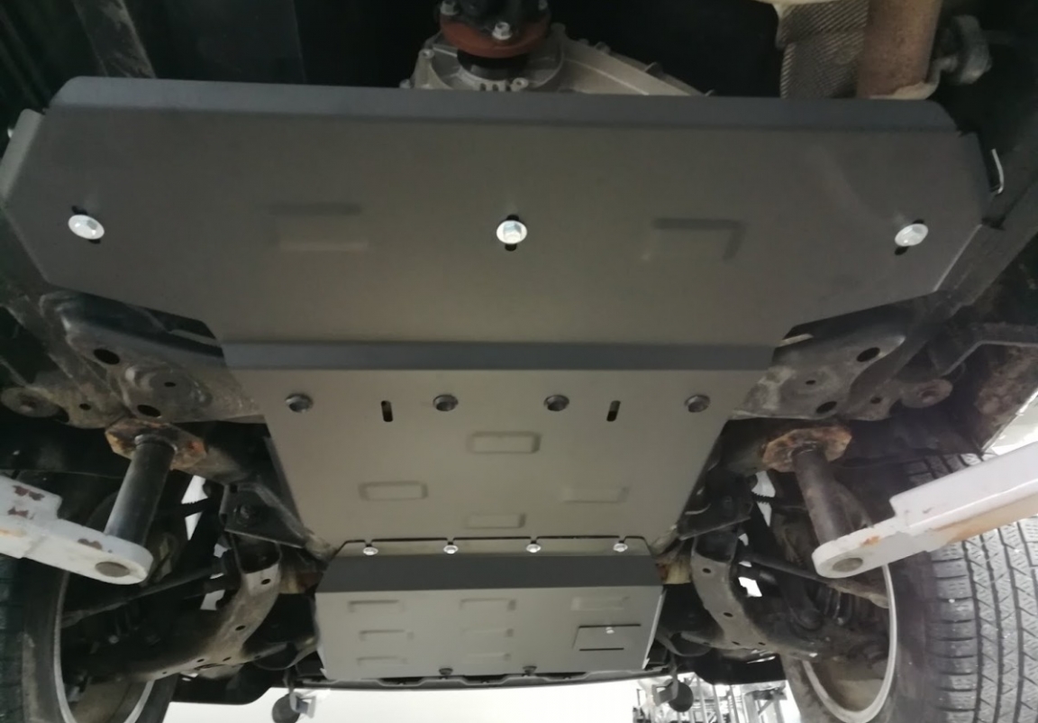 | Ieder voertuig heeft fabrieksgemaakte schroefgaten voor de carterbeschermplaat, voor een gemakkelijke montage. |