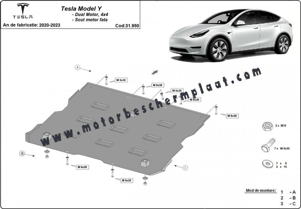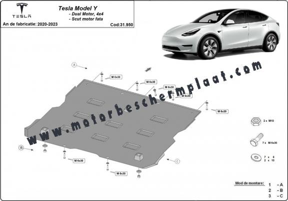 Voorste elektromotorschild tbv Tesla Model Y AWD